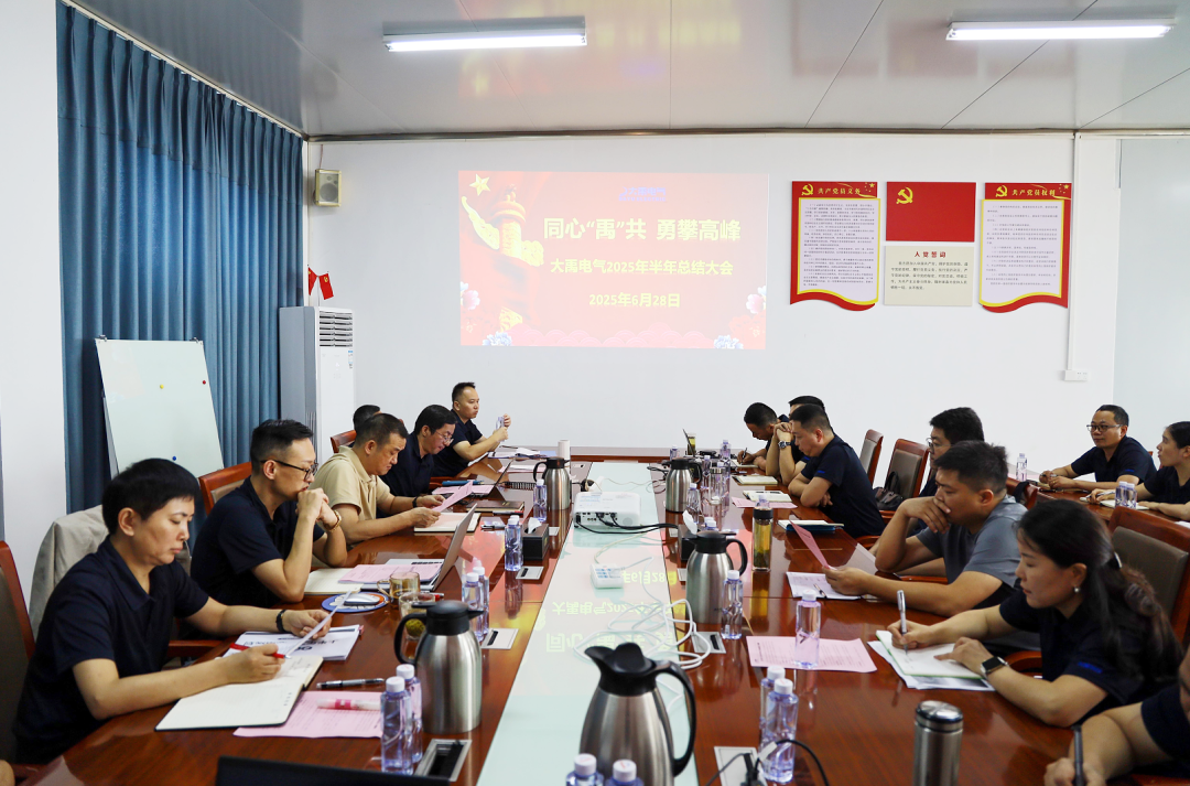 2025年6月28-29日,大禹電氣科技股份有限公司半年工作總結會,在公司3號會議室隆重召開。此次會議立足宏觀經濟復蘇乏力、行業競爭格局深刻變革的大背景,全面復盤上半年工作,精準錨定下半年發展方向,為企業高質量發展擘畫藍圖。